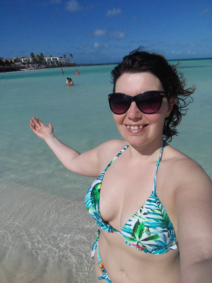 A praia é bonita contudo estava cheia de sargaço, o que tira um pouco a beleza...acabei por descobrir uma parte da praia, já no final, quase sem sargaço e sem ninguém, por isso aproveitei para ficar lá um tempinho, a água estava fantástica e diverti-me imenso, sim estava sozinha mas não pensem que por isso não nos podemos divertir, é bem possível! 😆