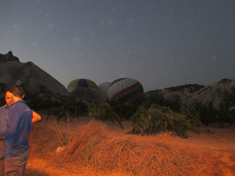 Começamos aos poucos a ver balões iluminados (pelas chamas que aquecem o ar que permite aos balões subir) a aparecer na paisagem e a magia começa a acontecer.