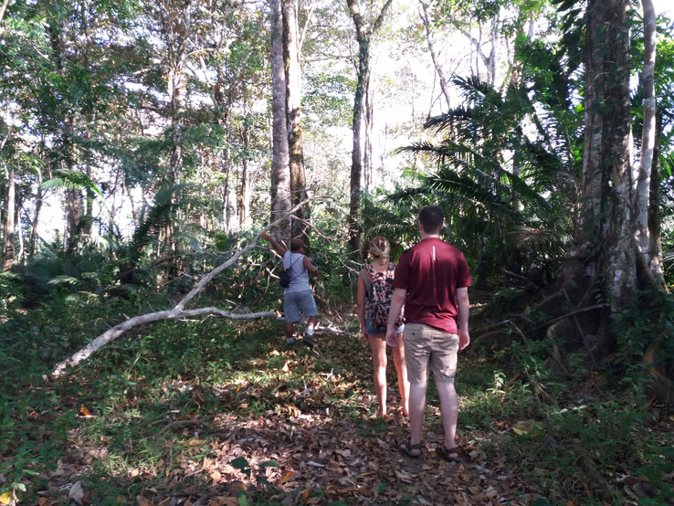 Num domingo, que tinha planeado não fazer absolutamente nada além de lavar a minha própria roupa 😅, deixei-me convencer em ir numa pequena aventura para conhecer outra praia junto ao rio, contudo o caminho que fizemos até lá era um pouco perigoso...basicamente fomos por um trilho onde tivemos que subir e descer um monte mas onde estavam muitas pedras soltas e folhas, tornando o piso escorregadio e não havia nenhuma proteção, passada essa parte tivemos que ultrapassar várias rochas grandes, sabem aquelas que separam pequenas praias umas das outras?! Essas mesmo, subíamos e descíamos, várias vezes, tive algum receio confesso mas fomos com cuidado e acabou por correr tudo bem, chegámos à praia sãos e salvos e aproveitámos um pouco a calma da água, uma vez que na praia normal o mar é um pouco agressivo, dá para entrar na água mas é preciso ter algum cuidado.