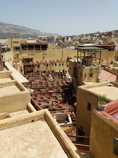Fomos conhecer um dos curtumes de Fez, o Chouara Tannery, é de facto impressionante e merece a visita, embora o cheiro não seja agradável 😆.