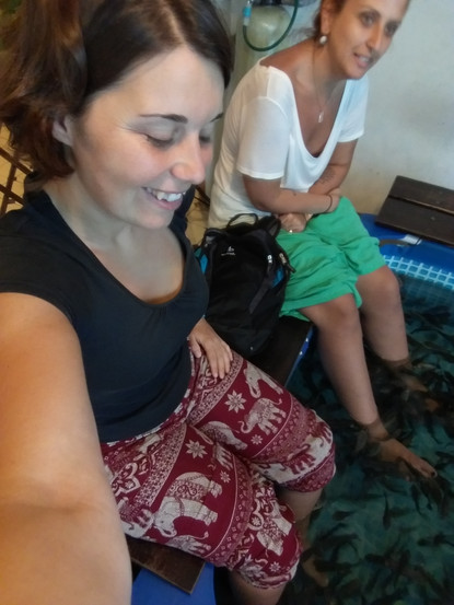 Ainda houve tempo para aproveitar um spa de peixes, já tinha experimentado antes na Tailândia e adorei, sendo que neste caso os peixinhos eram consideravelmente maiores, mas apesar de parecerem um pouco assustadores para colocarmos os nossos pés perto deles, posso afirmar que fizeram um excelente trabalho 👌.