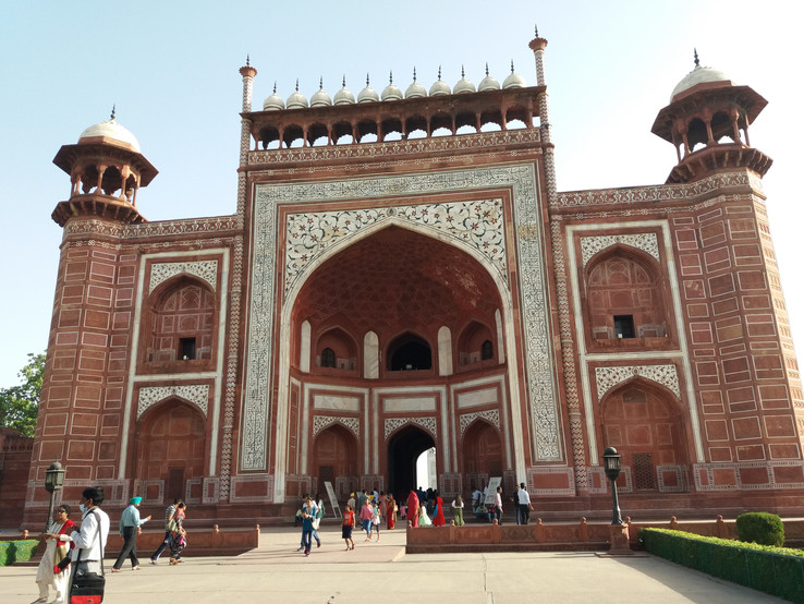 Assim que entrei no complexo comecei a sentir uma calma, mesmo com a enorme quantidade de turistas que já lá estavam, porque tal como eu, muitos turistas queriam assistir ao nascer do sol no Taj Mahal, o que na realidade até acabei por não assistir mas fui notando a diferença dos tons no céu e na fachada.